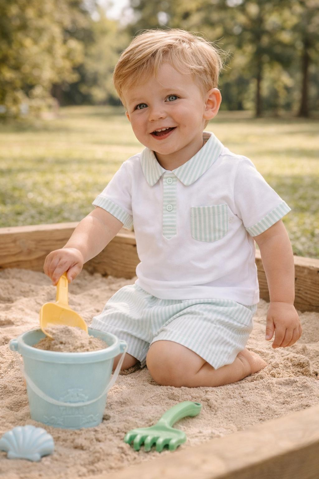 Deolinda jongensset mintgroen streep