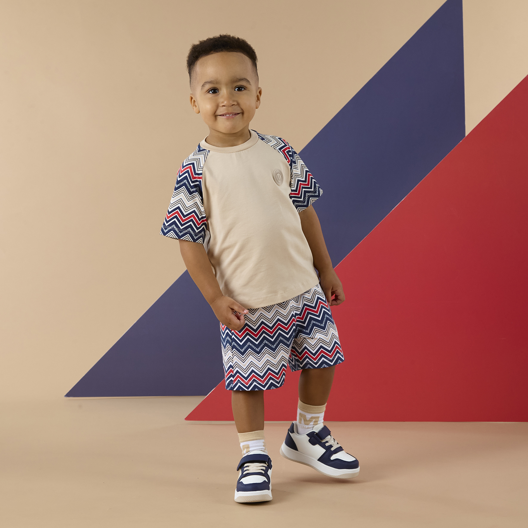 De Paxton set bestaat uit een beige soft jersey T-shirt met contrasterende zigzag-mouwen en een bijpassende short met zigzagprint, afgewerkt met een logobadge en trekkoord in de taille voor een perfecte pasvorm. Gemaakt van zacht, comfortabel materiaal, ideaal voor zomerse dagen, casual looks en relaxte outfits. Combineer de set als complete outfit of mix & match met andere items uit de collectie.