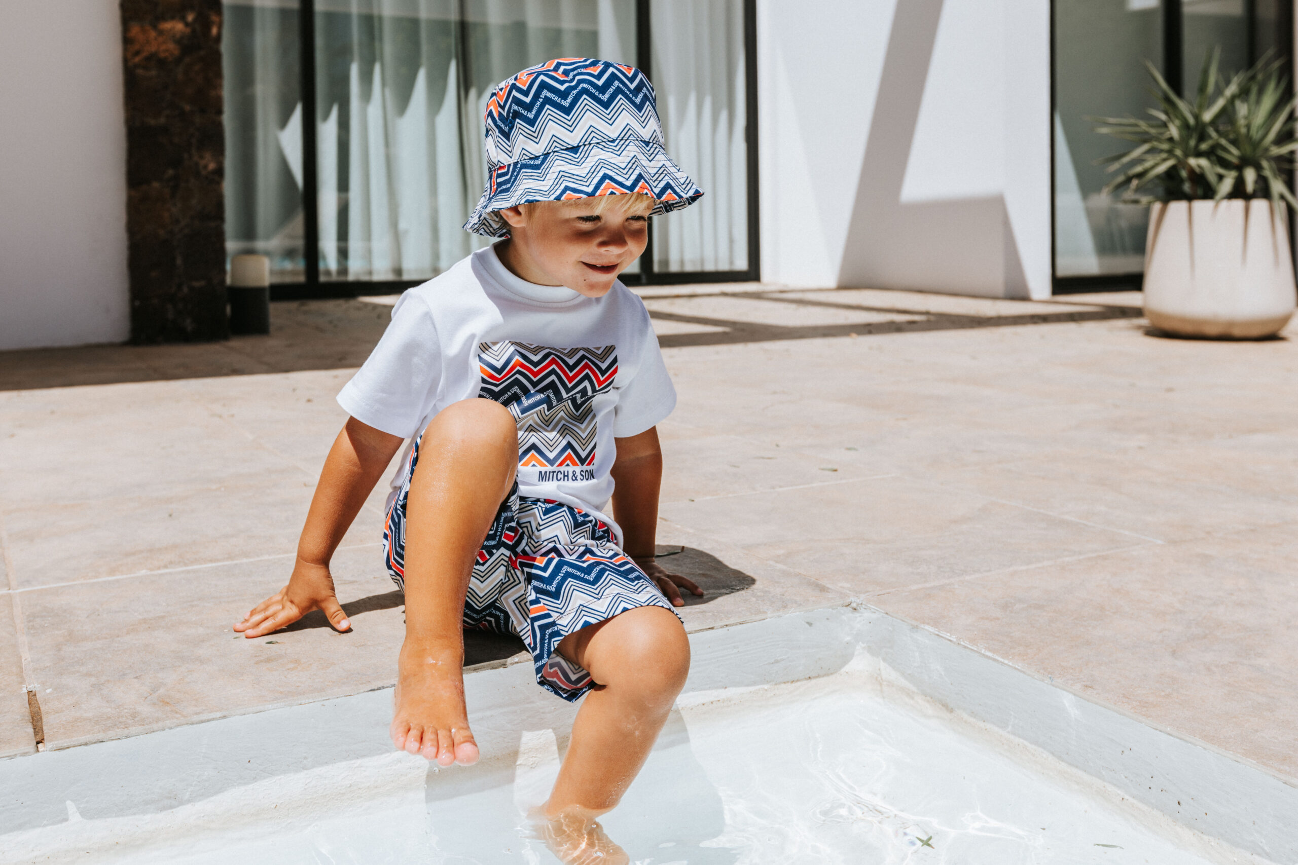 Het Pedro T-shirt in wit valt op door het speelse zigzag print artwork op de voorkant, wat een moderne en frisse touch geeft aan je outfit. Gemaakt van zacht en comfortabel materiaal, ideaal voor dagelijks gebruik en casual looks. Combineer het met een shorts of een zwembroek uit de collectie voor een complete, stijlvolle look.